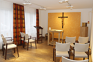 Im Andachtsraum des Malteserstift St. Barbara finden regelmäßig Andachten und Gottesdienste statt. Falls Sie sich einmal allein zurückziehen und zur Ruhe kommen möchten, steht Ihnen der Andachtsraum jederzeit offen.
