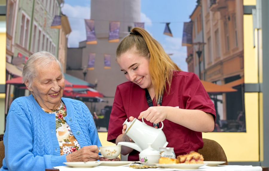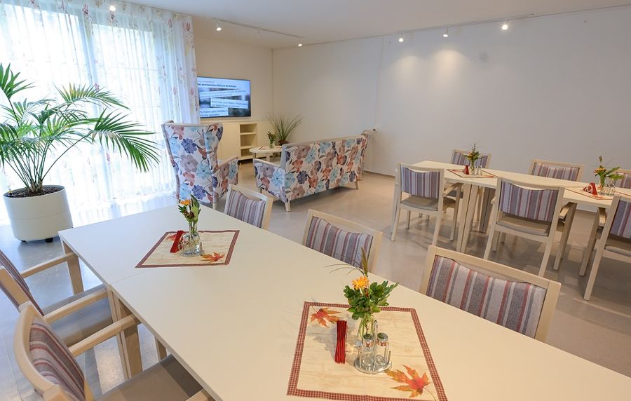 Möchten Seniorinnen und Senioren trotz gesundheitlicher Einschränkungen zu Hause leben und benötigen tagsüber individuelle Unterstützung, sind sie in unserer Tagespflege bestens aufgehoben. Sie bietet Platz für 12 Gäste. Unsere Mitarbeitenden unterstützen sie bei der Tagesgestaltung und bieten ihnen aktivierende Pflege. Mit vielfältigen Freizeitangeboten wie Kochen, Musizieren, Basteln und Sitzgymnastik gestalten sie zusammen mit den Gästen einen abwechslungsreichen und bereichernden Tagesablauf. Neben dem Mehrwert für die Gäste entlasten Tagespflegen auch die Angehörigen, wenn sie beispielsweise berufstätig sind oder die Betreuung ihres Familienmitglieds aus anderen Gründen nicht selbst übernehmen können.