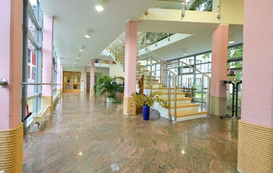 - Andachtsraum, Cafeteria, Frisör, Fußpflege und schöne Gartenanlage