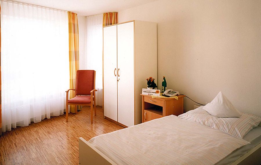 Ihr Zimmer im Malteserstift St. Hedwig können Sie mit persönlichen Einrichtungsgegenständen ausstatten. Jedes Zimmer verfügt über ein Pflegebett und ein separates Badezimmer.