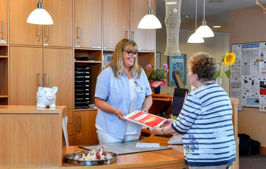 Im Eingangsbereich des Malteserstift St. Hedwig werden Sie herzlich willkommen geheißen. Unsere Mitarbeitenden an der Rezeption beantworten Ihre Fragen und helfen Ihnen gerne weiter. Von hier aus gelangen Sie in die Cafeteria oder können mit dem Aufzug auf die drei Wohnbereiche der Pflegeeinrichtung fahren.