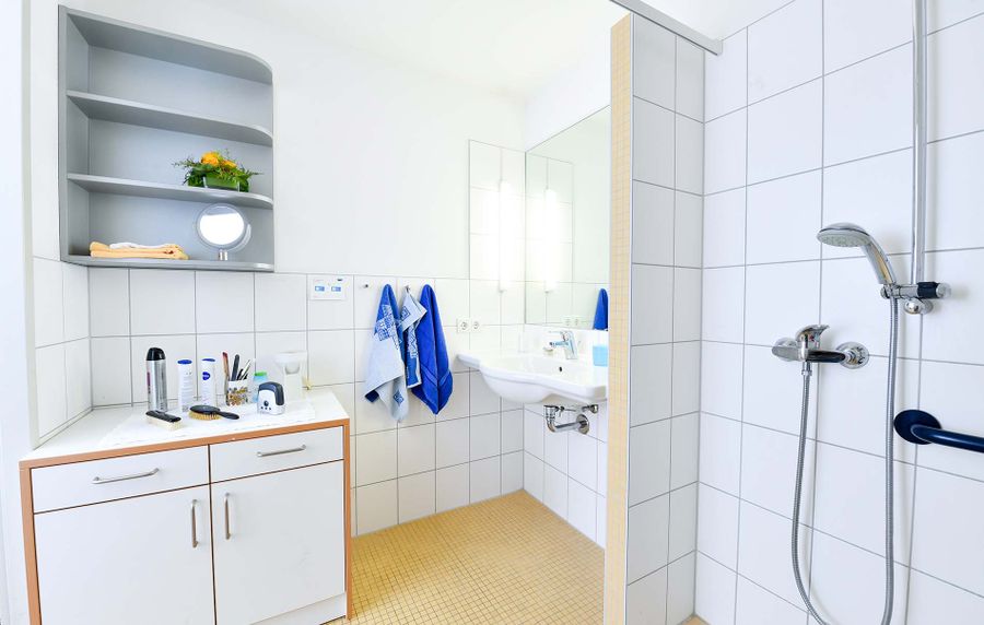 Ihr Zimmer im Malteserstift St. Johannes können Sie mit persönlichen Einrichtungsgegenständen ausstatten. Jedes Zimmer verfügt über ein Pflegebett und separates ein Badezimmer.