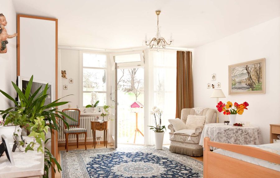 Ihr Zimmer im Malteserstift St. Josef können Sie mit persönlichen Einrichtungsgegenständen ausstatten. Jedes Zimmer verfügt über ein Pflegebett und ein separates Badezimmer.